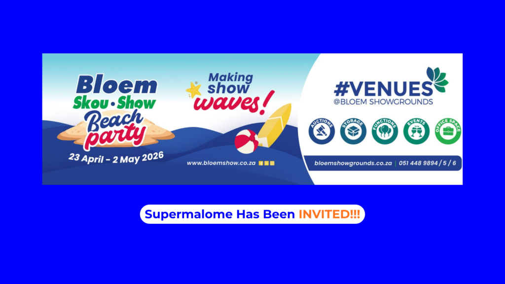 Would you like to guess where Supermalome will be making these big boy moves next week? Yebo ngithe next week. The energy is shifting, the moves are certainly louder, and the vision is getting bigger by the day . Supermalome will be at the Bloem Show Beach party from the 23th of April to the 2nd of May 2026. It is not just another appearance, it is what we call a statement. Pull through to witness the growth, the vibe, and the movement in real time. This is more than a moment, it is a takeover. Do not miss it.
